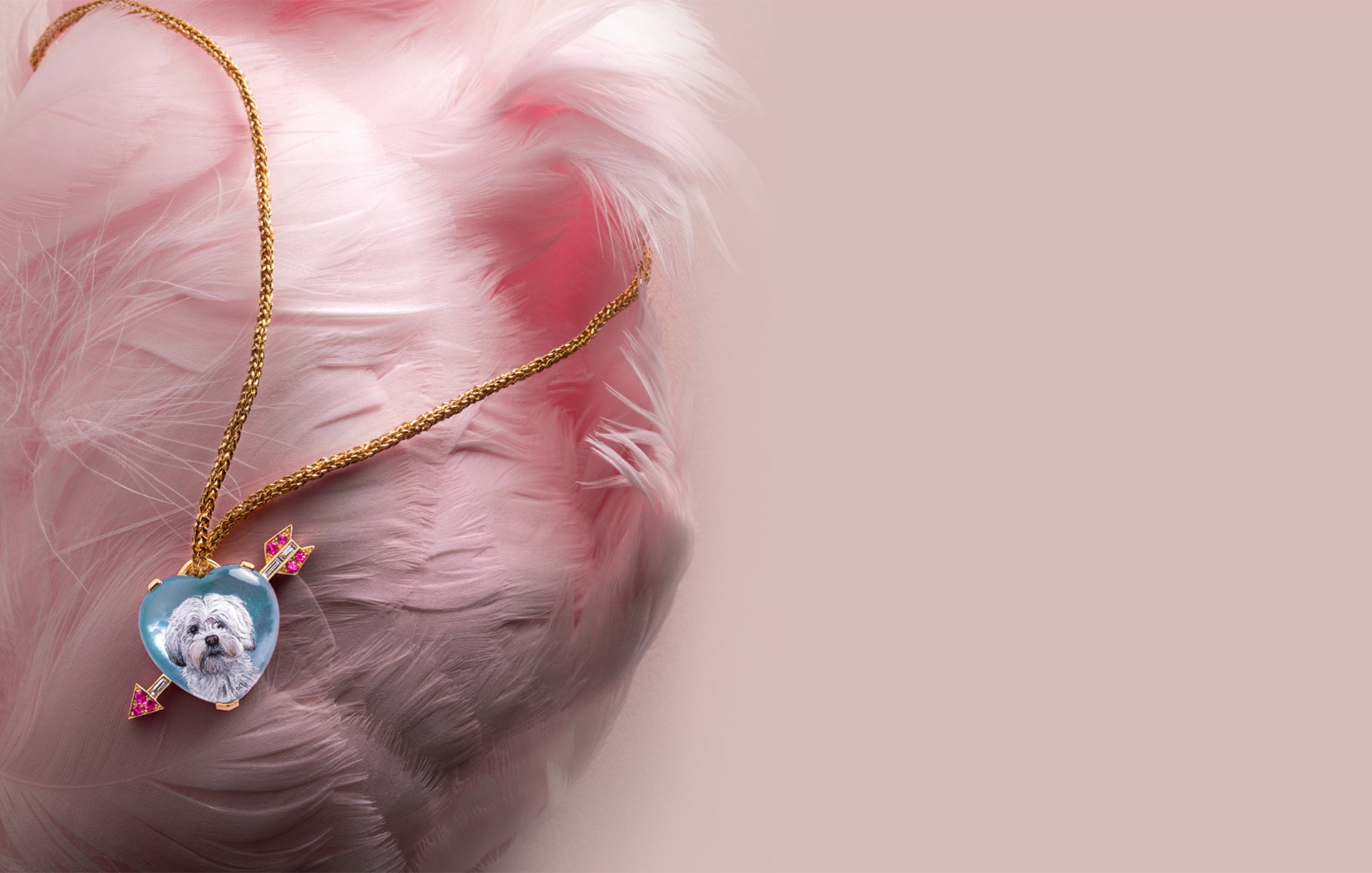 All we need to get started on your custom portrait is a photo of your pet and the desired shape of the portrait (round, oval, heart, etc.). Once completed, the portrait can be set like any gemstone. We will walk you through the design process, whether it is to create a simple gold bezel or something more complex.
