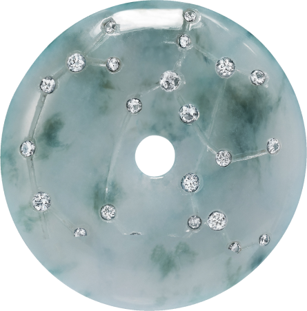Jade is highly prized in East Asian cultures and thought to bring luck. One of the most classic shapes is a round disc with a hole at the center. Our modernized version can be personalized with carvings or inlaid with diamonds. We work exclusively with German master carver, Michael Peuster, one of the few carvers in the world able to carve at a miniature scale.
